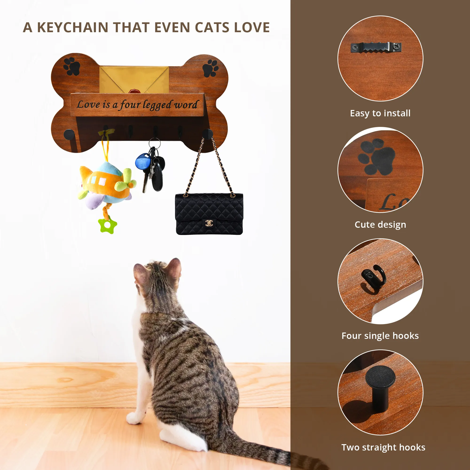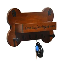 2023 Fancy Girlish Metal Wall Mount Key Holder With Puppy Bone Wall Shelf Wood Decorative