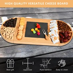 2023 New Assembly Large Charcuterie Board Set Serving Platter Bamboo Cheese Boards and Knife Set with Slate Housewarming Gift