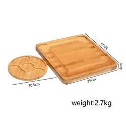 Luxury Premium Bamboo Meat Charcuterie Board Wood Cheese Platter with Knife Set and Ceramic Bowls for Gift