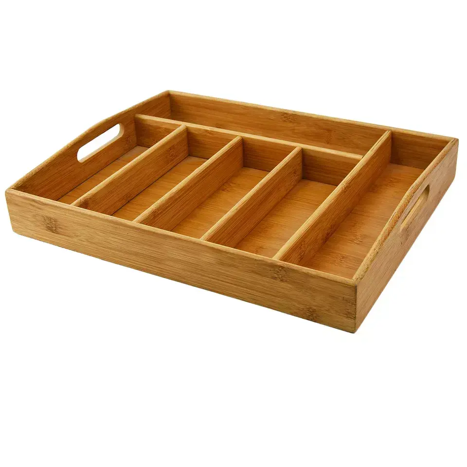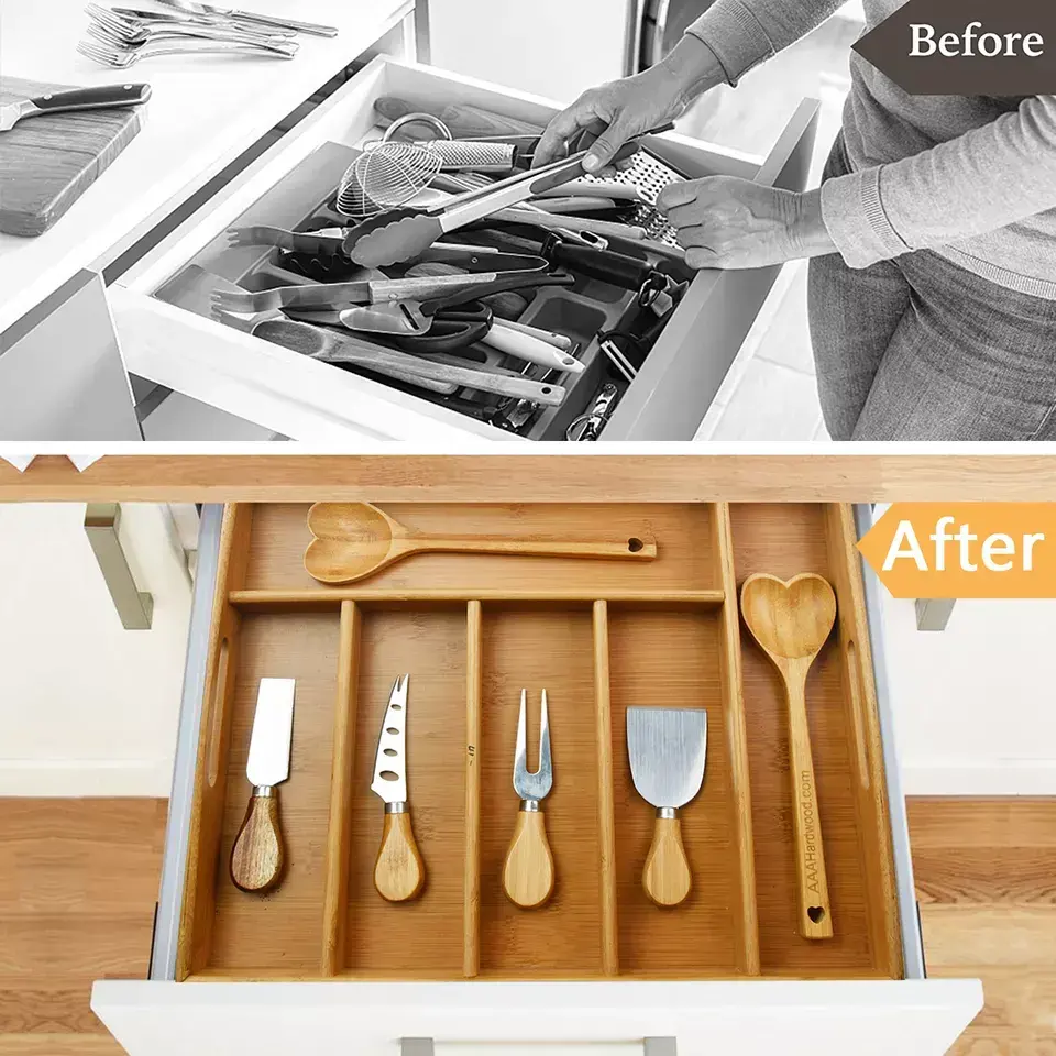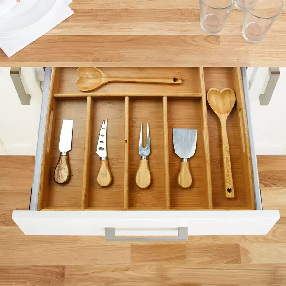 Bamboo Expandable Camp Kitchen Cooking Utensil Set Travel Organizer 24 Inches Serving Tray Drawer Rack