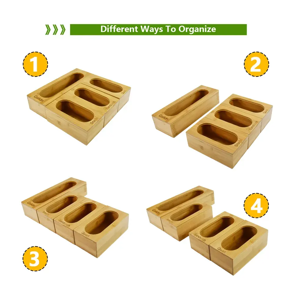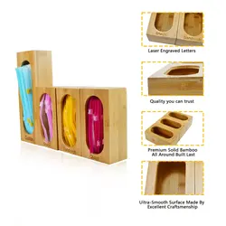 Premium 4pcs Bamboo Food Storage Box Ziplock Bag Holders Kitchen Drawer Organizer Compatible with Gallon, Quart, Sandwich Snack
