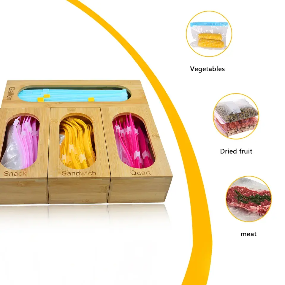 Acrylic New Plastic Color White Dispenser Bamboo Ziplock Bag Storage Wooden Organizer Holders Food For Fridge