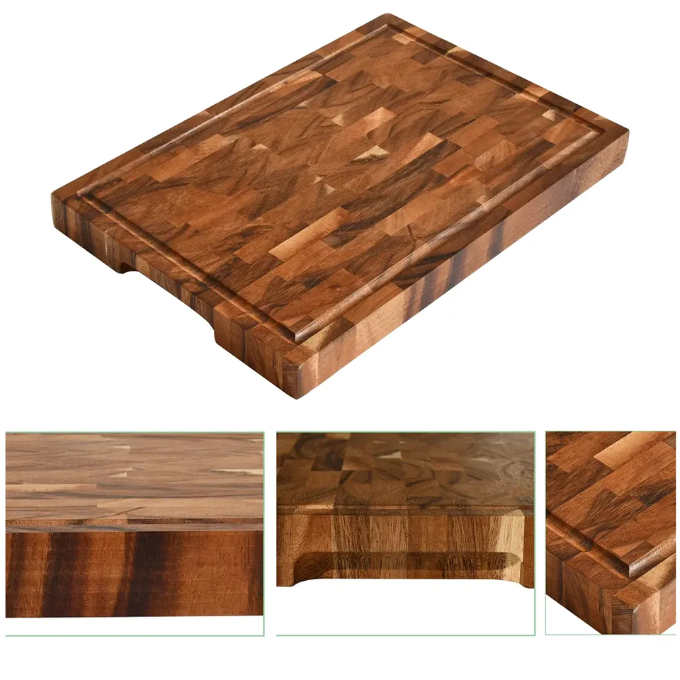 Wooden Large Kitchen Multi Purpose End Grain Cheese Chopping Cutting Board With Handle Blocks
