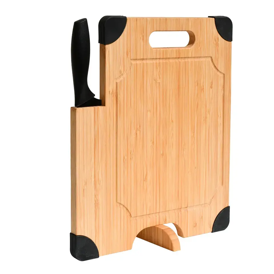 Wood Butcher Block 3 Pcs In 1 Set Bamboo Cutting Board With Stand Juice Groove