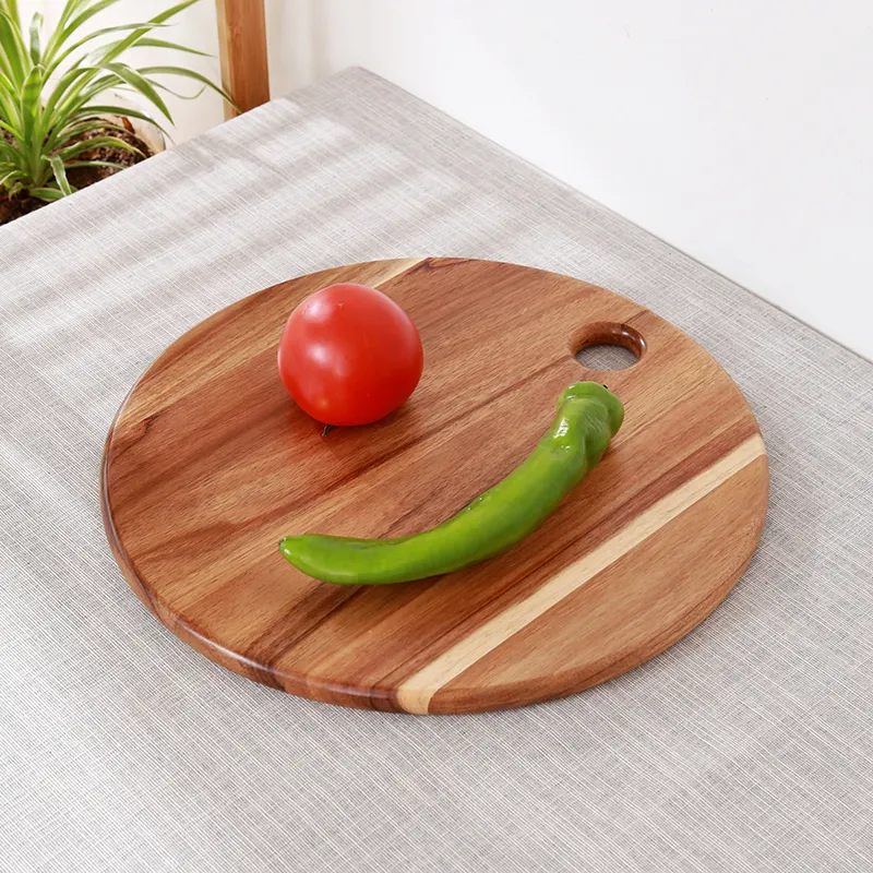 Custom Durable Acacia wood Round Chopping Cutting Board Wooden Pizza Serving Board with Handle