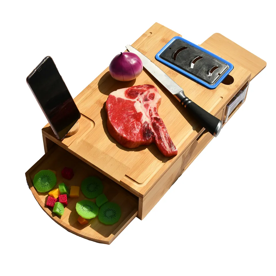 Chppping Board Wood Wooden Wine Rack Bamboobamboo Chopping Board With Phone Holder Trays Graters Lid